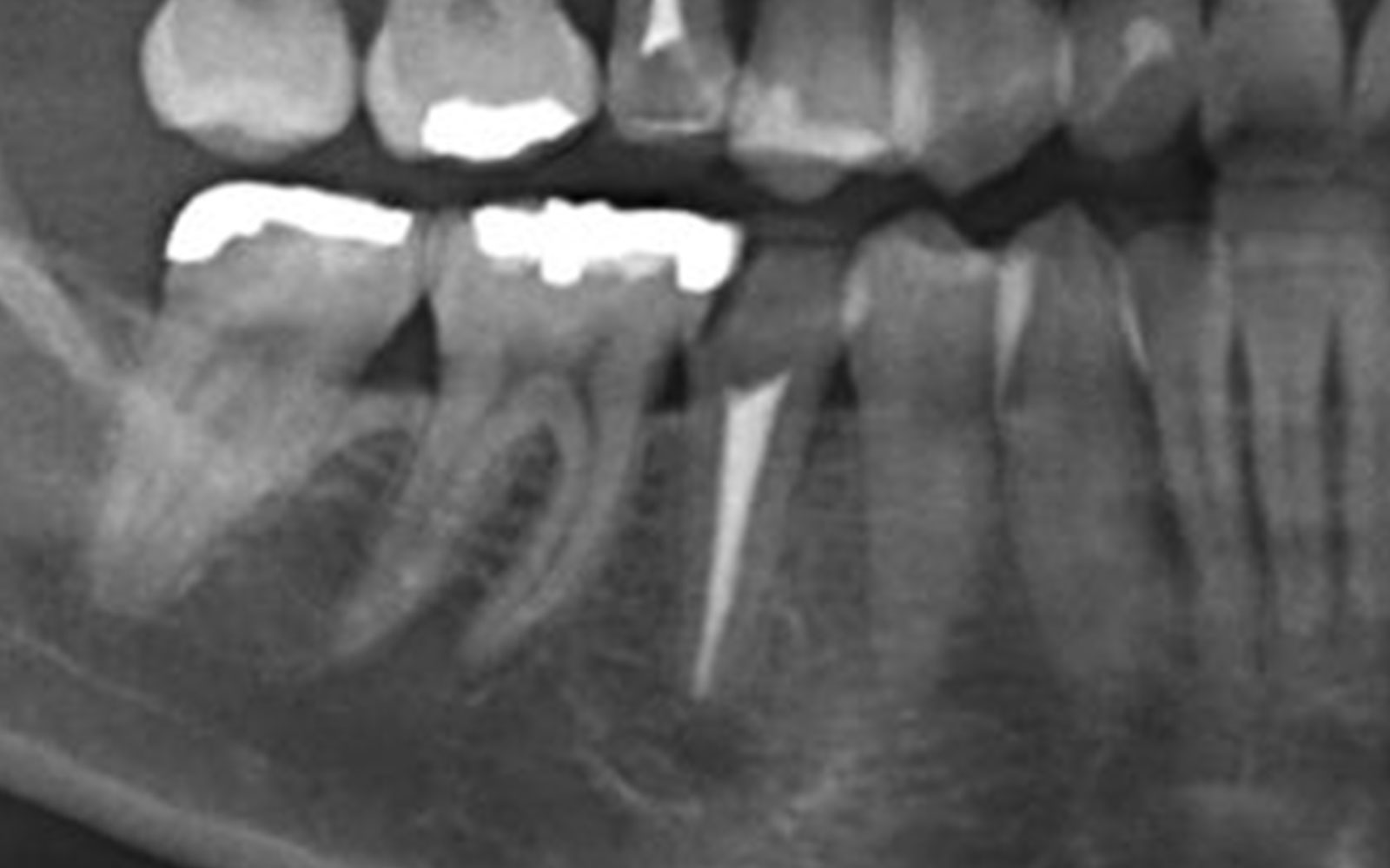 以前に他院で診てもらった時も抜歯の診断を受けたがインプラントは下顎管(神経)に近いためできないと断られたそうです。